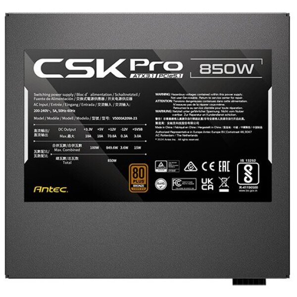 ספק כוח חצי מודולארי ANTEC CSK 850 PRO ATX3.1 Rdy Semi-Modular 80Plus Bronze